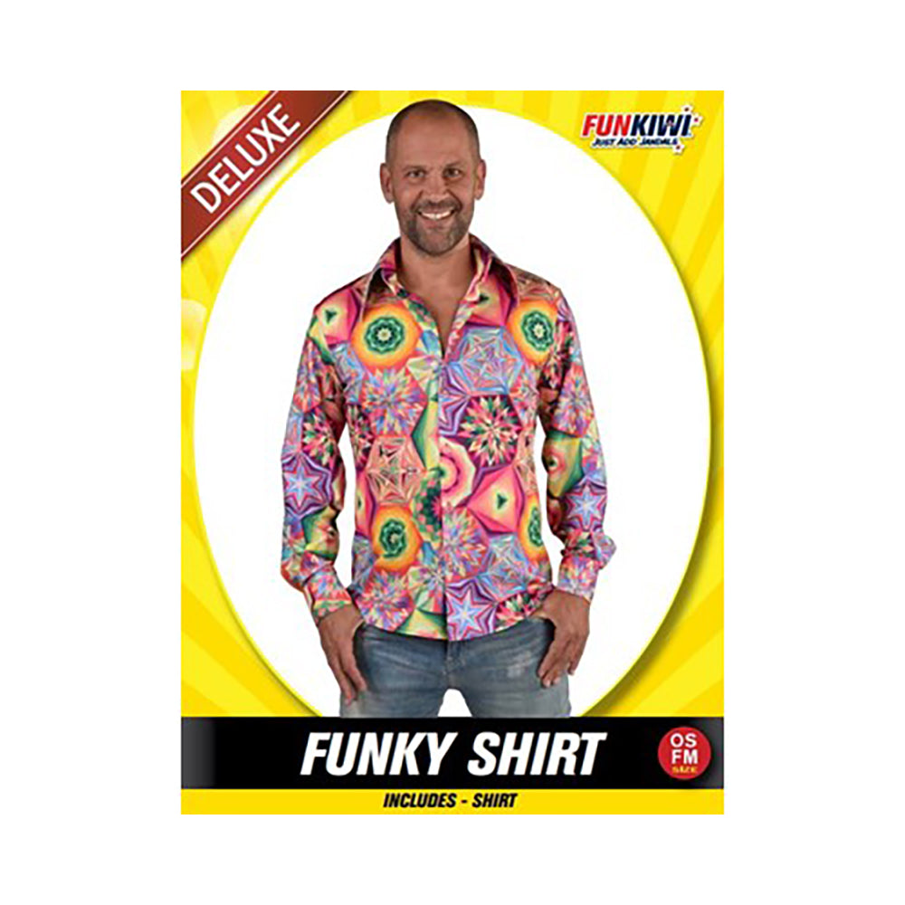 Join the 1960s Hippie movement in this rainbow funky shirt! This groovy shirt will make everyone at the party jaws dropped!