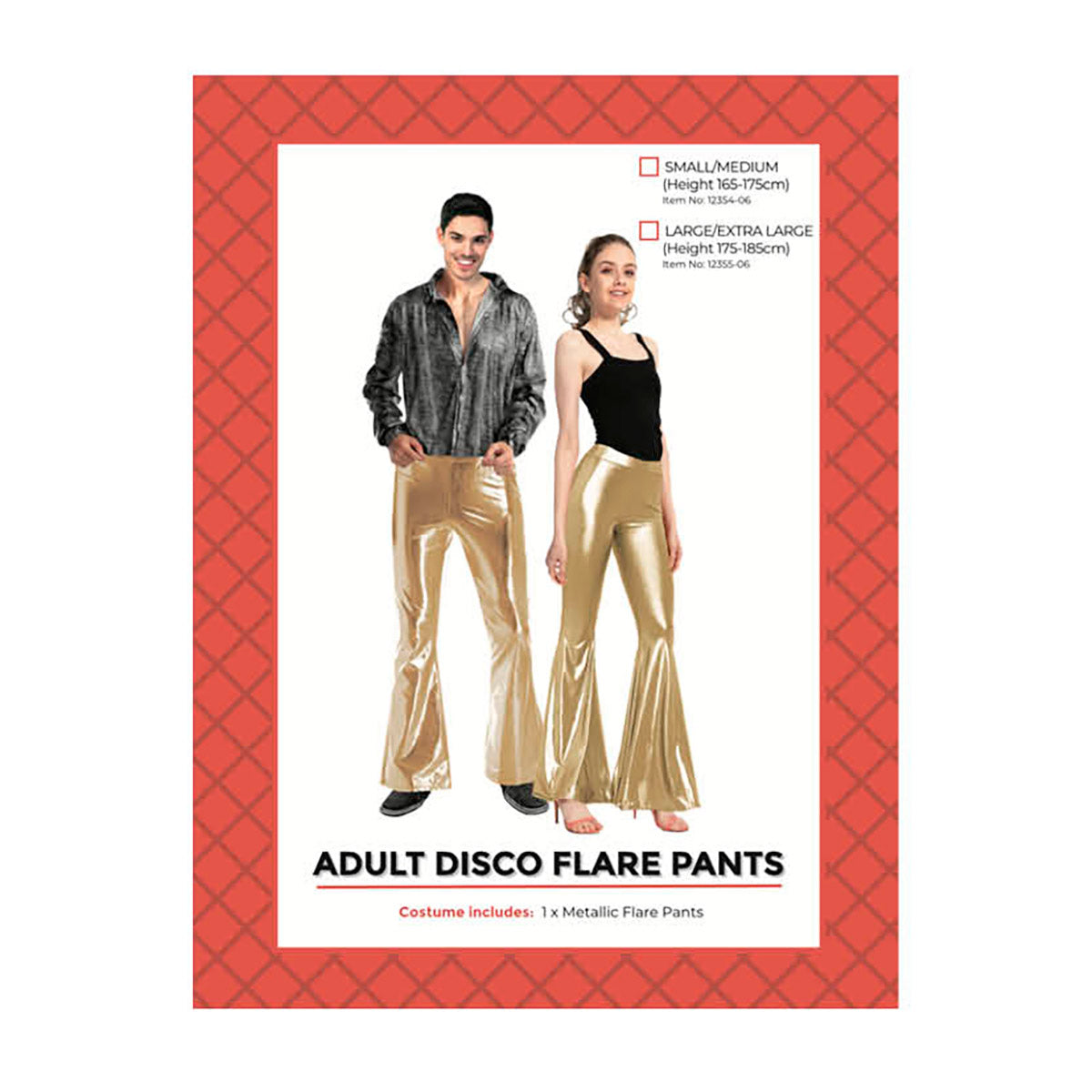 Feel the groove and show your moves in these Adult 70s Disco Flare Pants. Perfect for any 70s dress up party, these pants will have you feeling the Saturday Night Fever in no time. So don your dancing shoes and get ready to groove!