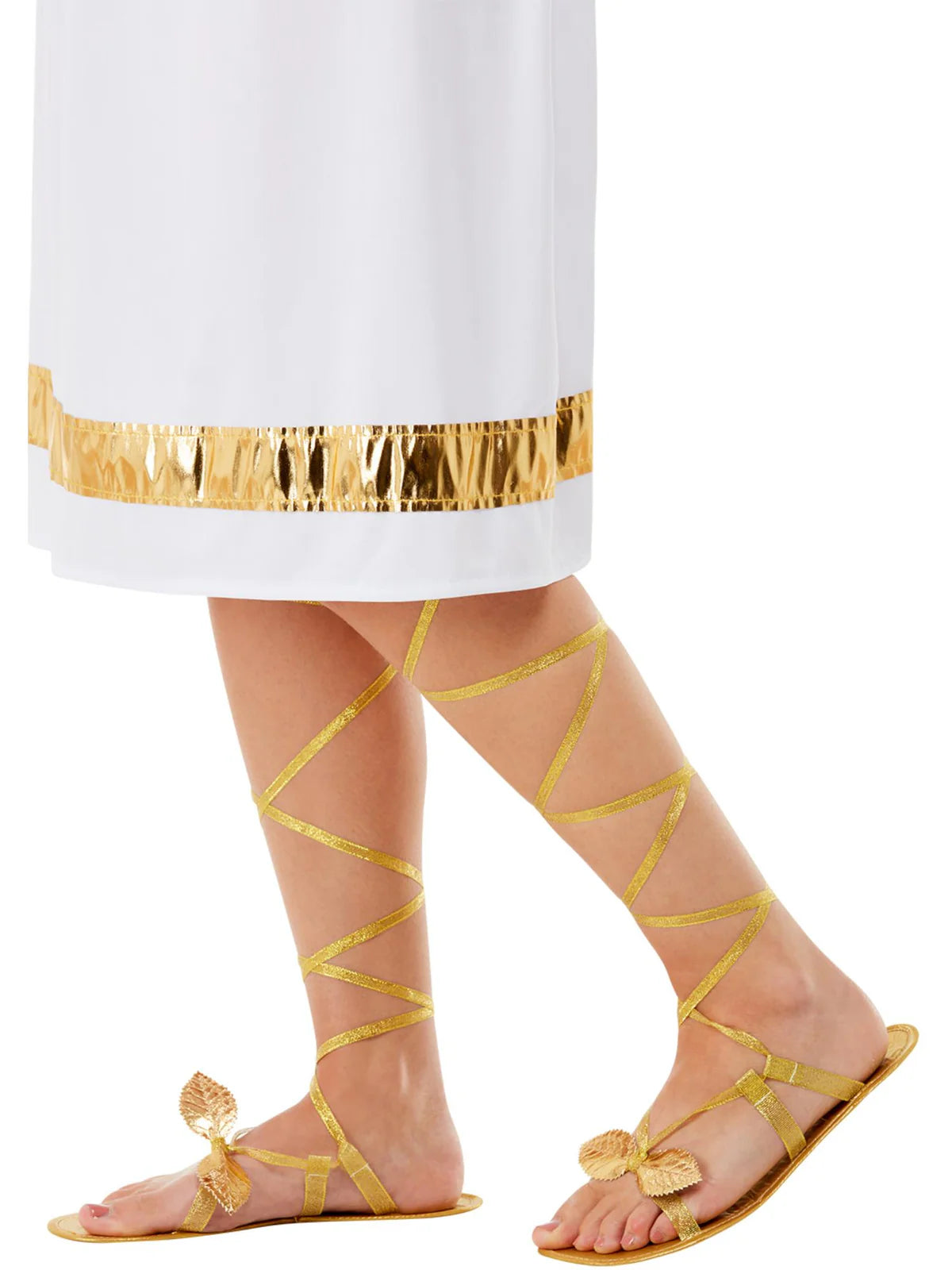 Grecian Lace Up Sandals, Gold, with Gold Leaf Detail