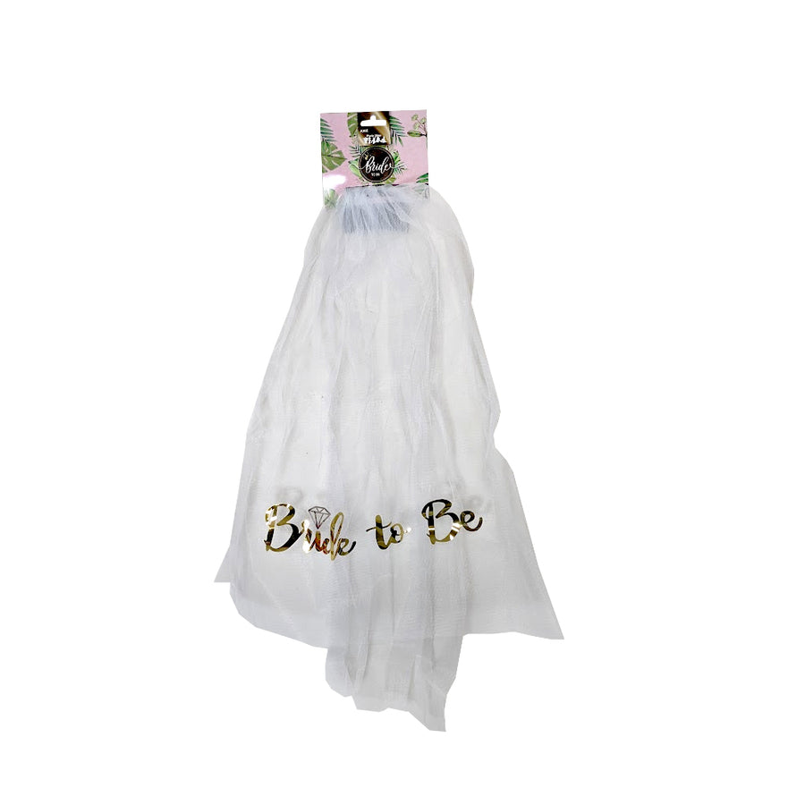 Celebrate the bride to be with this beautiful white veil with "bride to be" in gold lettering.
